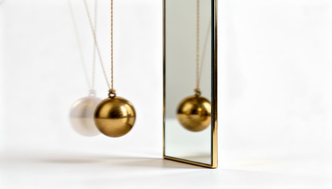 圖示:觀察真實的單擺和鏡中的單擺,都能得到同樣的規律