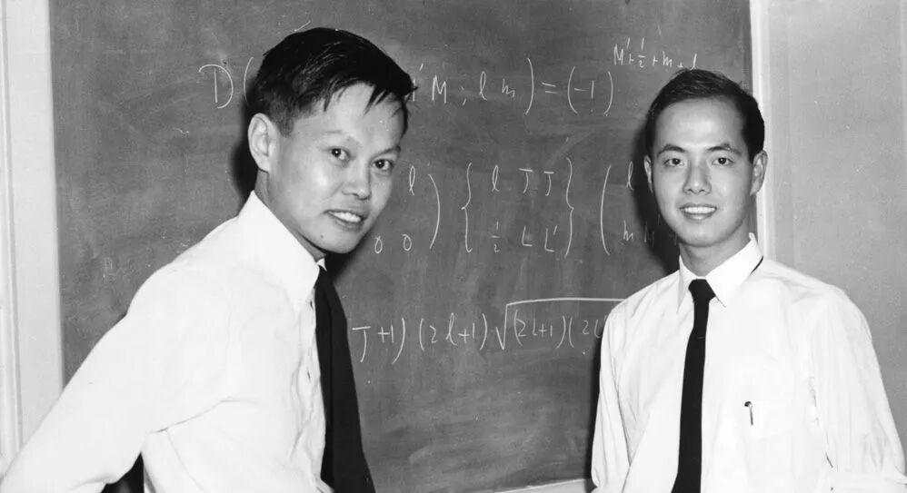 就在此時,距離美國東海岸不遠的新澤西州,有一處學術聖地,偉大的愛因斯坦不久前在那兒與世長辭,這就是著名的普林斯頓高等研究院。34 歲的楊振寧和 30 歲的李政道此時正形影不離地走在校園中,熱烈地討論着西桃之謎,這對來自中國的青年才俊此時根本想不到,一年之後,他們將因爲此時此刻討論的問題而同時獲得諾貝爾獎。這也是中國人對人類的科學事業做出的重大貢獻之一。那時的楊振寧和李政道都是中國國籍。而且楊振寧先生雖然中途加入過美國國籍,但是現在又已經是標標準準的中國公民。所以,我們可以毫不心虛地說,物理黃金時代的大師有我們中國人。