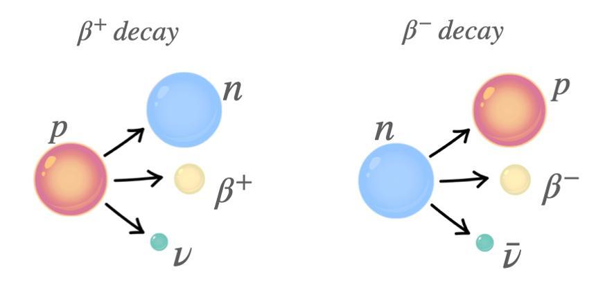 有一種弱相互作用叫做 β 衰變。什麼是 β 衰變?1896 年,德國物理學家貝克勒爾發現了鈾原子的放射性現象,92 號元素鈾能夠自發衰變成 82 號元素鉛。接着,盧瑟福和湯姆孫在一年後發現,鈾在衰變過程中會產生三種不同的放射線,準確地說,大自然中沒有線,所有的線都是由粒子組成的。你可能想問,他們怎麼知道是三種不同的粒子呢?這個原理其實很簡單,就是讓放射線通過一個磁場。然後他們就發現,在磁場中,放射線的偏轉方向會不同,根據異性相吸的原理,也就知道了鈾在衰變過程中,釋放出帶正電、負電和不帶電的三種粒子。他們就把帶正電的叫做 α 射線,帶負電的叫做 β 射線,不帶電的叫 γ 射線,那麼發出 β 射線的衰變過程就叫做 β 衰變。