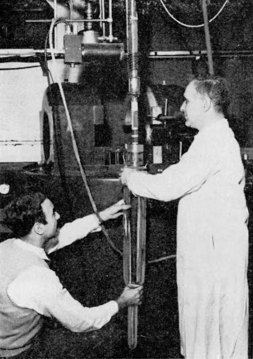 圖:工作人員配合吳健雄在華盛頓特區的標準局低溫實驗室進行實驗