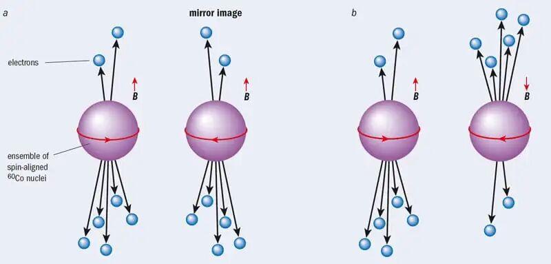 實際實驗中自旋方向反轉與鏡像實驗結果不同,這一事實證明,在β衰變的弱相互作用中宇稱守恆被破壞。