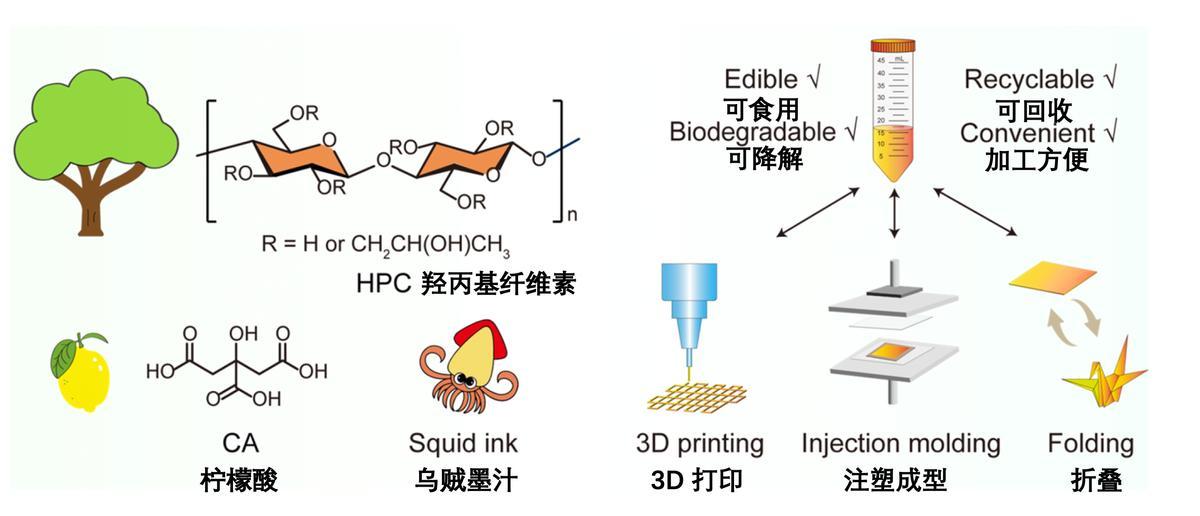 以羥丙基纖維素爲基、藉助檸檬酸的多重氫鍵“插層與鎖定”,研究者把液相中的手性液晶有序延續到固態,獲得線性可調、明亮穩固的結構色,同時將力學強度推到商用品質的區間,並與現有3D打印和注塑工藝順暢銜接。結構色不再只是實驗室的“炫技”,而是具備工程落地性的材料方案。