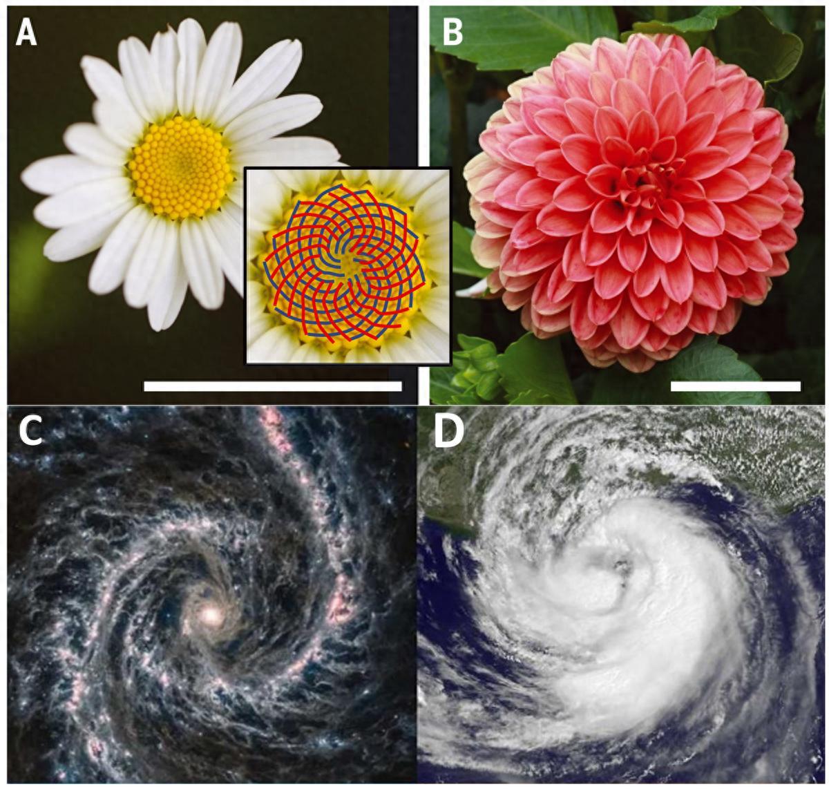 自然界中的斐波那契螺旋:小雛菊、大麗花、星系、颱風