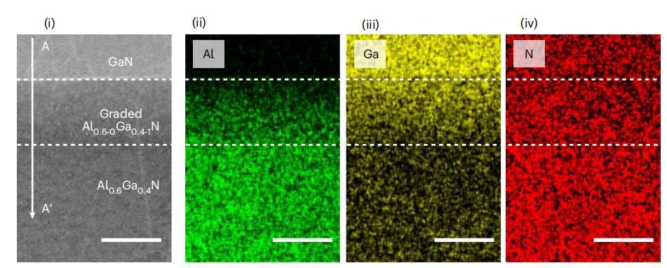 Al0.6-0Ga0.4-1N外延層的掃描透射電子顯微鏡及對應的X線能量色散譜元素分佈圖