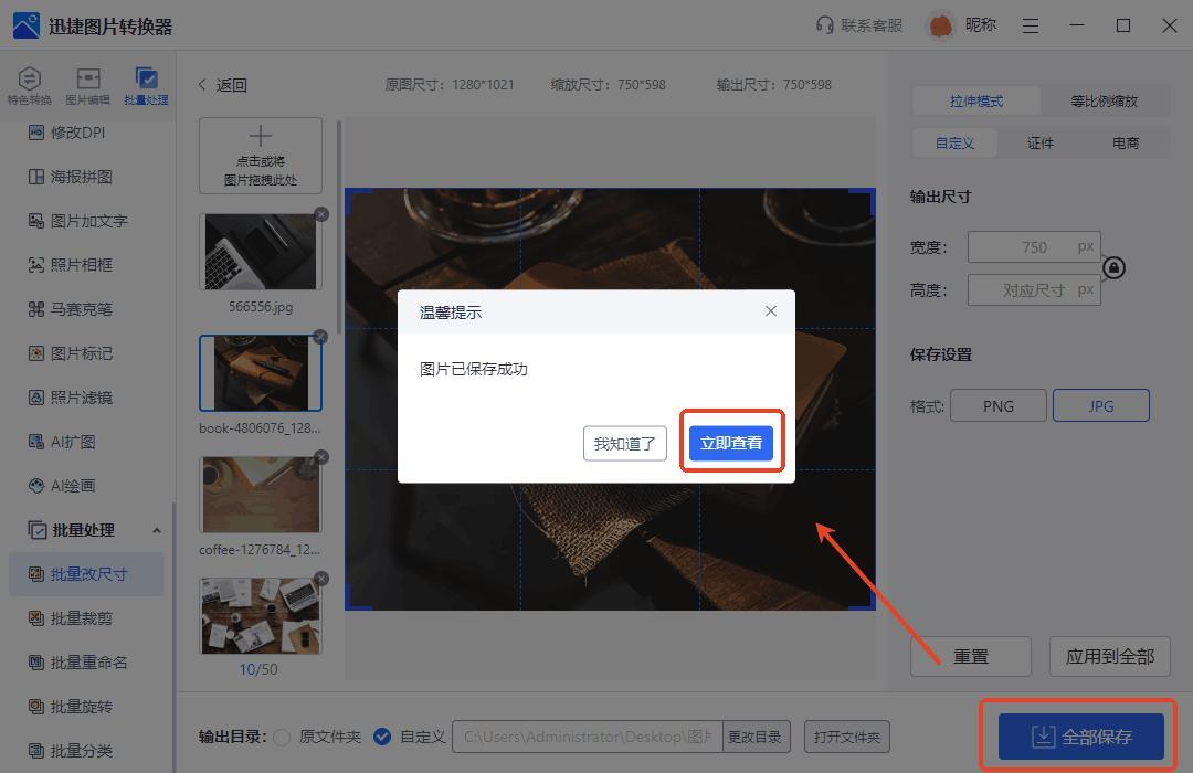 最後點擊右下角的【全部保存】,就能將修改好尺寸的圖片保存到指定文件夾中,可以立即查看修改體積後的圖片。