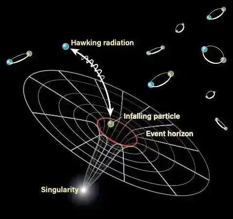 其中一個粒子——比如說,那個帶有負能量的反粒子——因爲離黑洞更近了那麼一絲絲,不幸被吸入了事件視界,墜入了無盡的深淵。