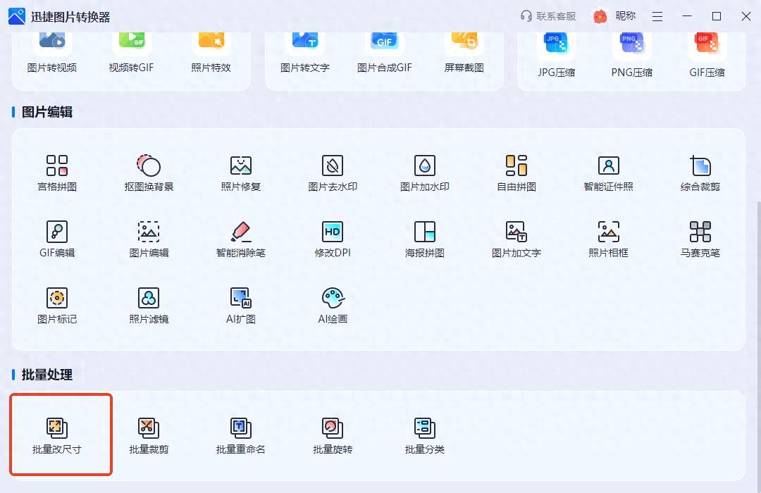 打開軟件,在首頁找到【批量改尺寸】功能。