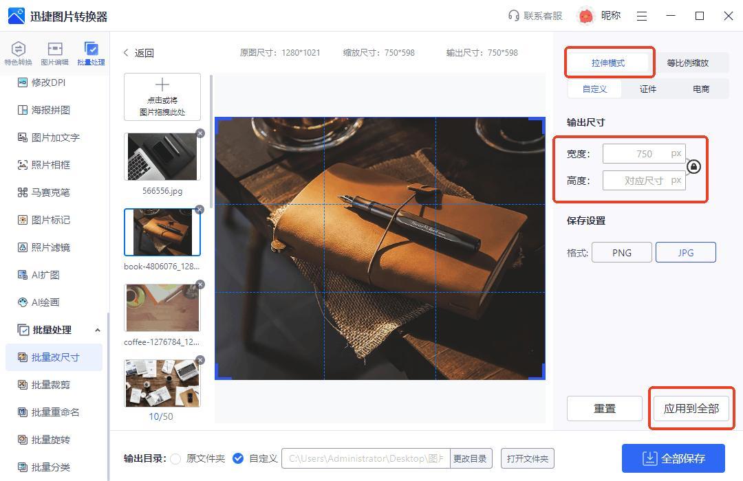 另外,軟件其實也可以直接修改圖片的寬度和高度,還能自定義設置圖片的尺寸,完成後點擊右下角的【全部保存】即可。