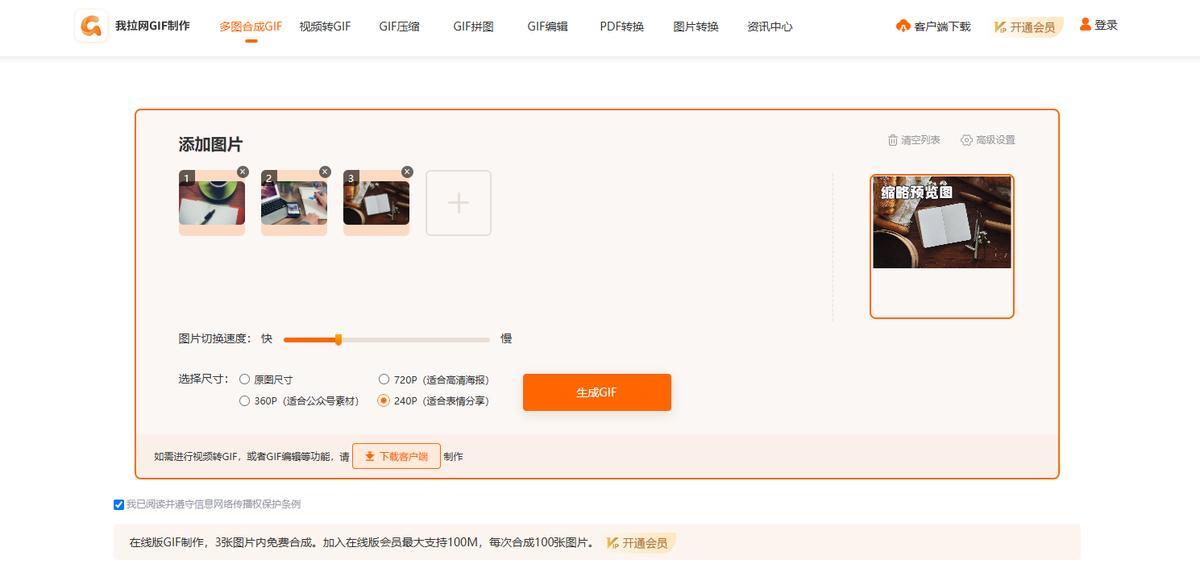 只需要導入圖片,設置尺寸和速度調節選項,點擊【生成GIF】即可,適合臨時需要製作動圖的用戶。