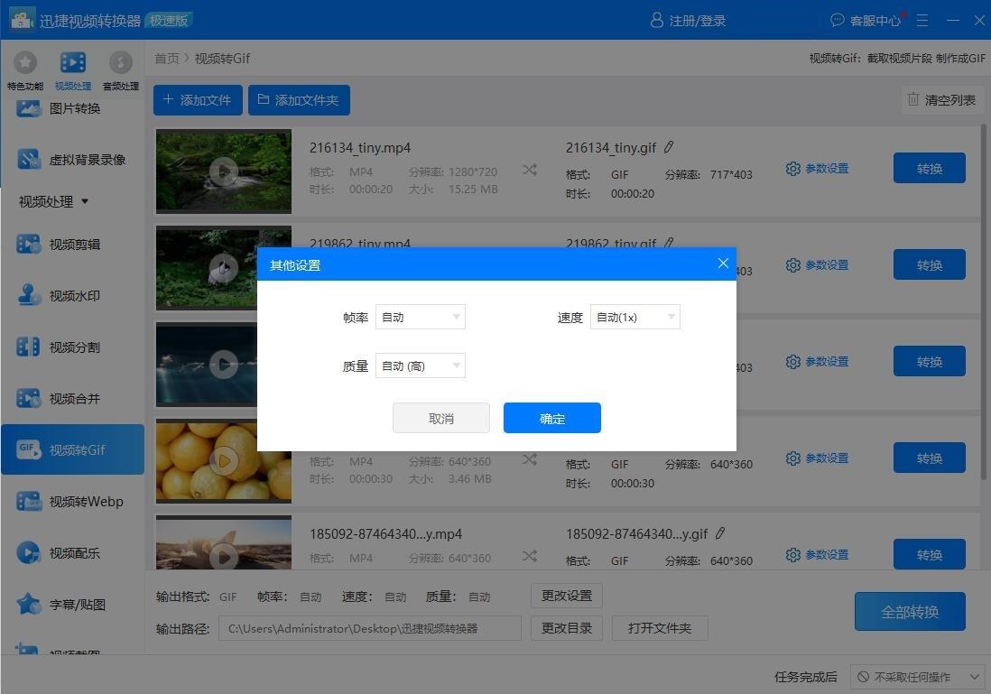 一款集視頻格式轉換與GIF製作於一體的桌面工具,軟件可以一次爲多個視頻製作出有趣的GIF動圖,提高效率,而且GIF參數都可以調節,還能在文件大小和畫面流暢度之間找到平衡,無論你的需要簡單製作GIF,還是製作更加精細的GIF,都能在這裏找到需要的功能。