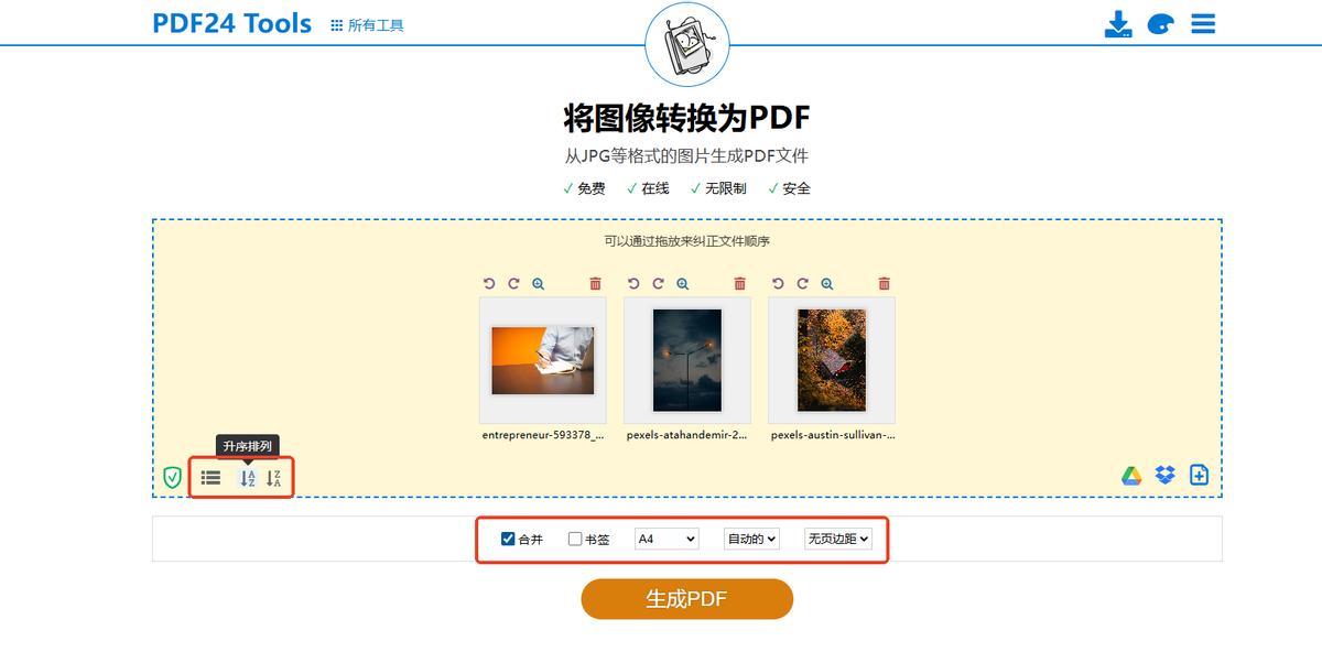 4、通過『PDF24 Tools』在線將jpg轉爲pdf