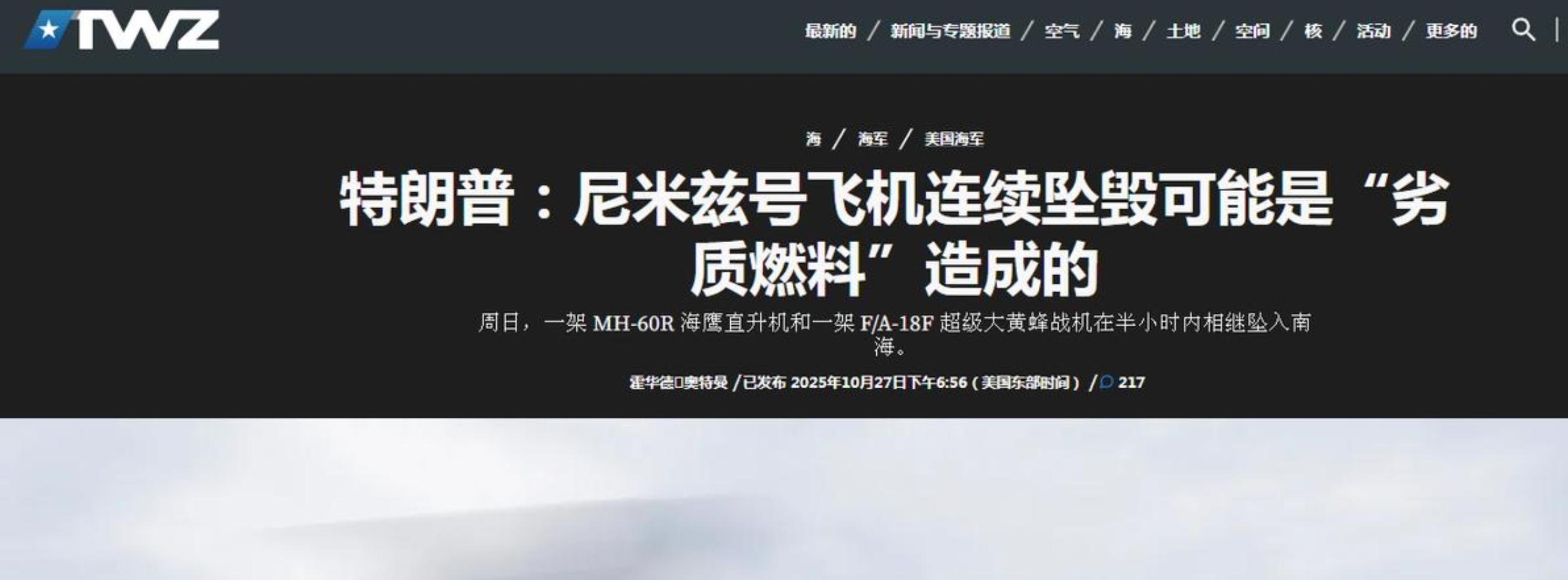 美軍接連發生的兩起墜機事故,可能與燃油品質有關,具體原因在於美軍使用了劣質燃油。