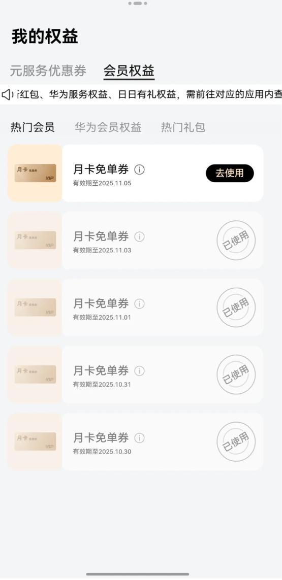 這個“鴻蒙有禮”成了我的賺錢和省錢助手。每天桌面右滑進入負一屏,點鴻蒙有禮,領個隨機紅包,開個福利小盲盒。像華爲應用會員、熱門應用會員月卡兌換券、元服務優惠券之類,我都領到不少呢。
