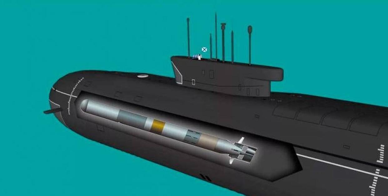 它的設計充滿俄羅斯式的“粗暴智慧”:頭部配備聲吶陣列自主導航,中段搭載核戰鬥部,尾部是緊湊型核反應堆和泵噴推進系統。由於體型過於龐大,普通核潛艇無法攜帶,俄軍專門改建了“別爾哥羅德”號核潛艇作爲其水下座駕,後續的“哈巴羅夫斯克”號更能搭載6枚“波塞冬”,堪稱移動的深海核武庫。