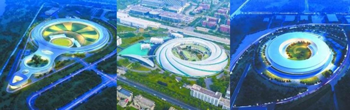 左:北京高能同步輻射光源(HEPS)中:上海同步輻射光源(SSRF)右:合肥先進光源(HALF)