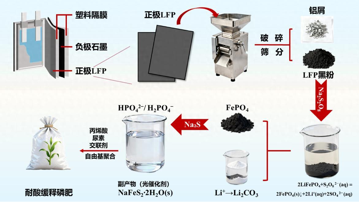 更巧妙的是,研究團隊瞄準了緩釋肥料領域的一個技術瓶頸——多數丙烯酸系緩釋肥在酸性條件下網絡結構不穩定,限制了其在酸性土壤中的應用。於是,一項創新技術應運而生:將退役電池中的磷,轉化爲適用於酸性土壤的“耐酸緩釋磷肥”,同時高效回收鋰。這不僅解決了LFP電池回收“不賺錢”的困境,突破了緩釋肥的“酸敏感”瓶頸,還爲緩解資源環境壓力提供了新思路,真正實現了“變廢爲寶”的循環經濟理念。