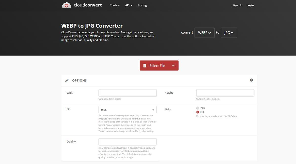 一個不錯的雲端文件轉換工具,支持多種格式的文件相互轉換,可以用來將webp轉爲JPG格式,而且無需下載軟件,在瀏覽器中即可使用。
