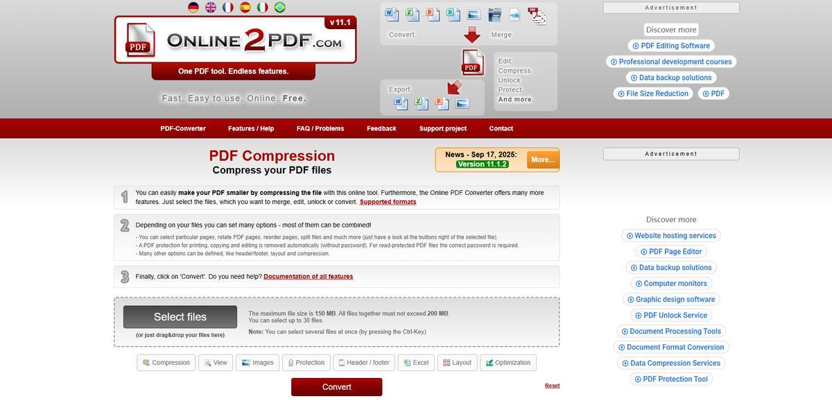 一款實用的在線PDF處理網站,支持PDF壓縮,它提供多種壓縮選項,使壓縮後的PDF文本銳利、圖像細節保留完整,效果還可以,如果在該網站中賬戶沒有升級的話,一次可以壓縮一個PDF文件。