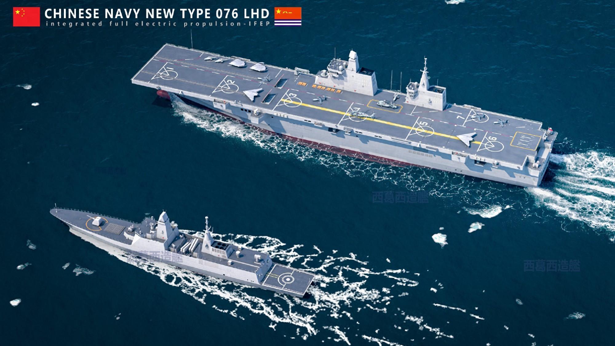 更讓美軍頭疼的是,中國給攻擊-21準備了專屬平臺——076型兩棲攻擊艦。這艘4萬噸的鉅艦有電磁彈射器,甲板面積比美國級兩棲攻擊艦大50%,還能保留塢艙兼顧兩棲投送。它不需要優先保障有人戰機,能專注搭載無人機羣,專家推測,076最多可帶40架攻擊-21,戰時能發動飽和式打擊。