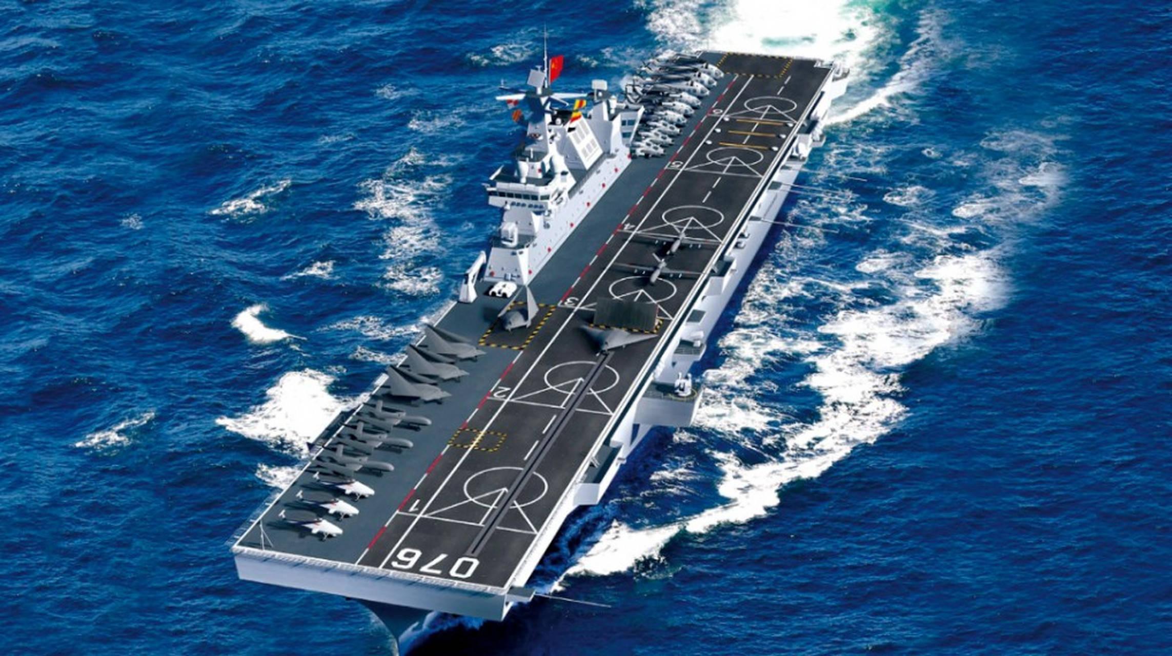 中國開啓下餃子模式!076型兩棲攻擊艦首次海試,排水量達4萬噸