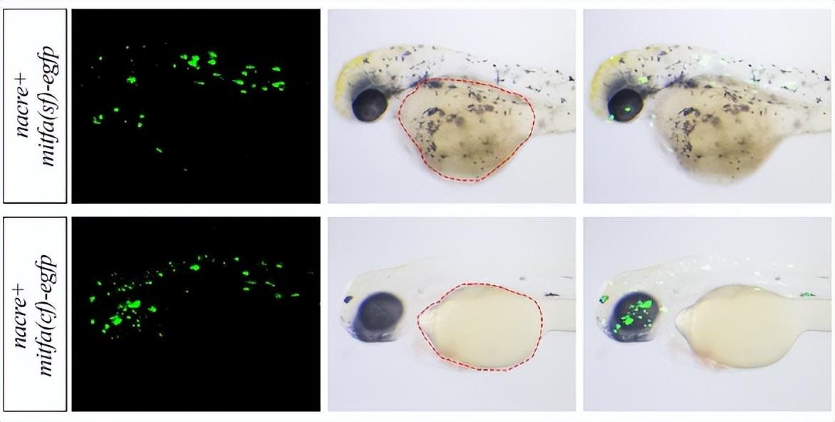 後來,科學家們深入研究了我的基因,發現多個與黑色素合成相關基因的表達顯著下調,其中,一個名爲mitfa的關鍵基因更是發生了突變。這個基因本該像“指揮棒”一樣,指揮下游的“工人”製造黑色素,但因爲它發生了一個剪接突變,少了21個氨基酸,導致“指揮棒”斷裂,無法發出指令。“工人”們沒了指令,自然就“停工”了,色素也因此無法合成。[2]。