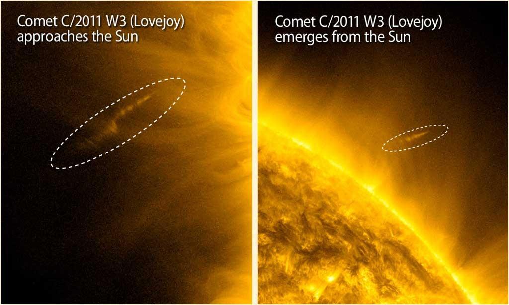 洛夫喬伊彗星衝入距太陽約14萬公里的近日點,遭遇強烈的太陽輻射