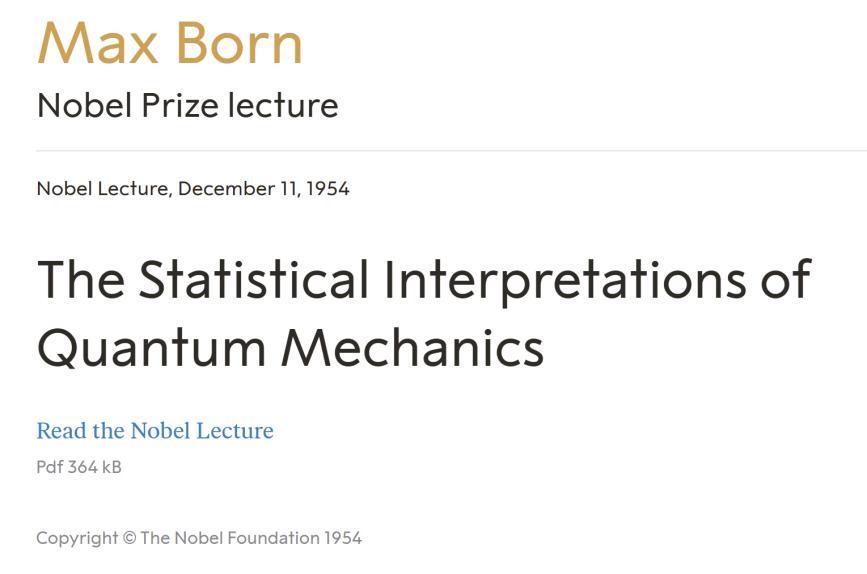 [6] B Born M. Statistical interpretation of quantum mechanics[J]. Science, 1955, 122(3172): 675-679.