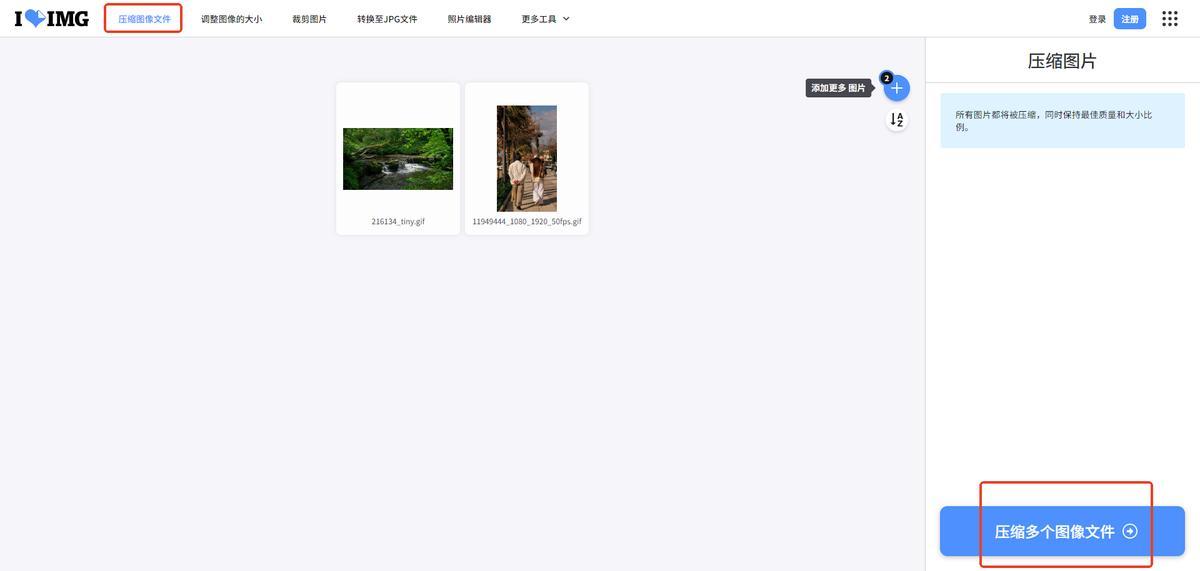 在網站首頁選擇【圖片壓縮】,導入多個GIF文件。