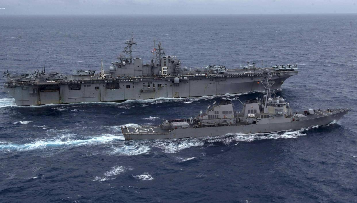 “福特”號航母戰鬥羣並非單獨行動。此番大軍的出動,將近1.2萬名精兵強將的龐大艦隊中,海軍艦艇的近12艘就如一隻掣肛的巨手,隨時可將對岸的敵人掐死一隻。這一數字隨着部署完成將上升至1.5萬人,成爲幾十年來美軍在該地區最大規模的軍事集結。