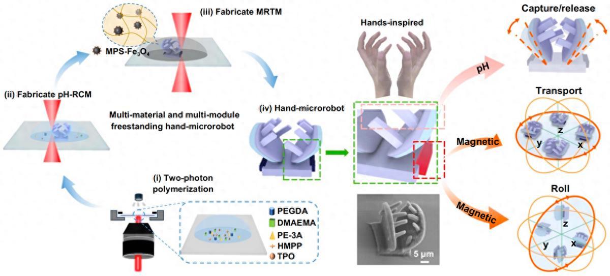 這項研究工作不僅在技術上實現了重要突破,更爲微納機器人的設計提供了新的思路。通過巧妙的多材料集成和模塊化設計,他們成功地解決了單一材料系統功能受限的問題,爲微納機器人賦予了更強大的環境感知和執行能力。