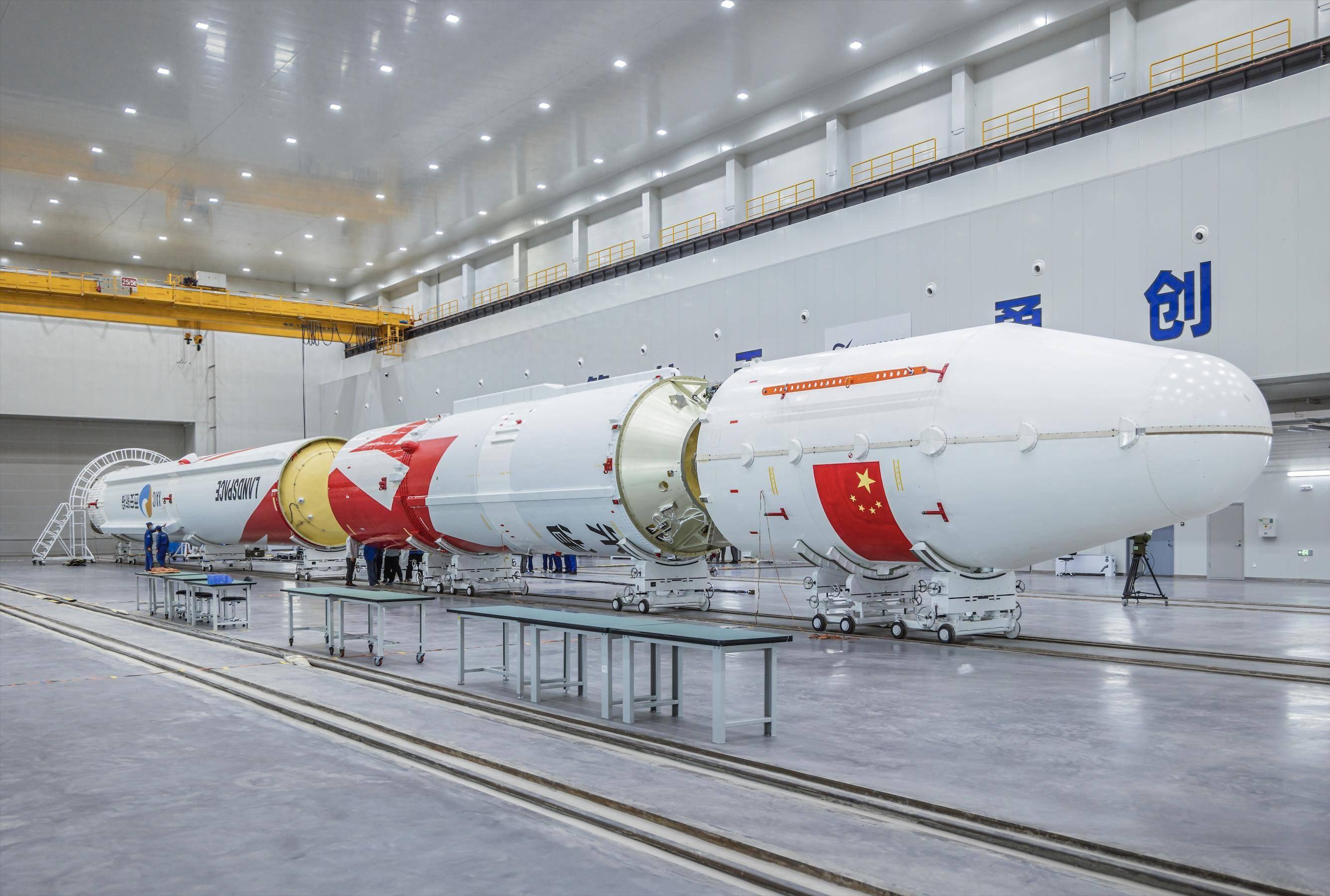 與“夢舟”搭配的是長征十號運載火箭。這款“巨無霸”近地軌道運力達70噸,地月轉移軌道運力27噸。中國已規劃好“雙箭登月”方案:先用一枚長征十號把25噸的“攬月”着陸器送上月球軌道,再用另一枚發射26噸的“夢舟”飛船對接。