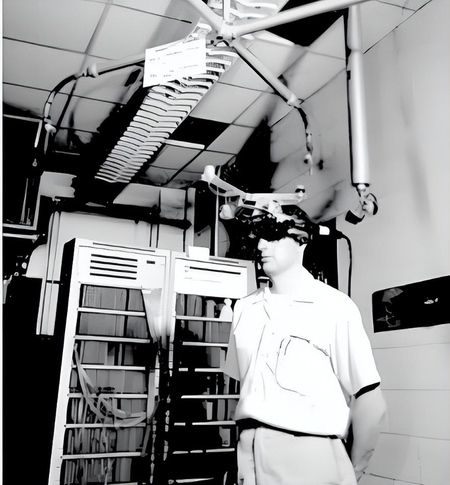 計算機圖形學之父伊凡·薩瑟蘭與其學生鮑勃·斯普勞爾創造了名爲“達摩克利斯之劍”的頭戴顯示器。儘管造型笨重、圖像簡陋,但它確立了VR頭顯的基本形態。
