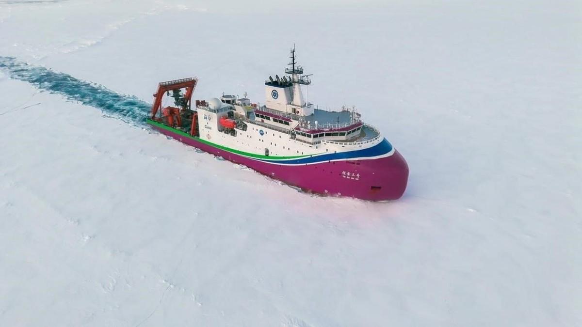 支撐這次北極深潛任務成功的,還有一個不可或缺的角色——“探索三號”科考母船。這艘國際首艘具備破冰能力的載人深潛作業母船,是專門爲極地深潛作業而設計建造的。在北極密集的浮冰中,“探索三號”就像一位勇敢的開路先鋒,用堅固的船體劈波斬浪,爲潛水器開闢出下潛和回收的通道。