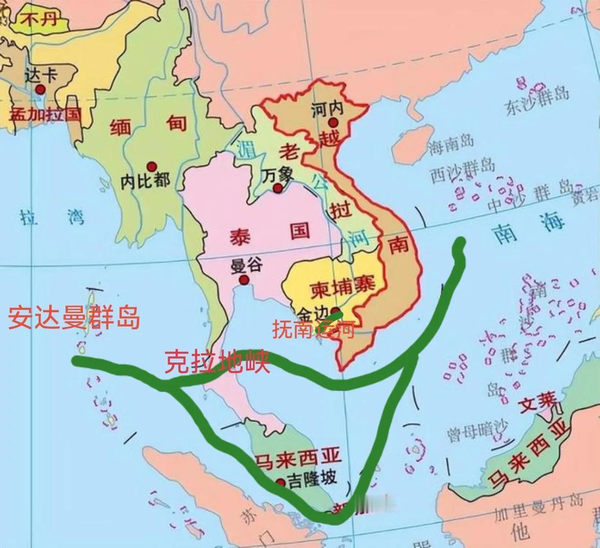 但值得注意的是,這“三條公路”不是沒有平替,至少泰國的克拉運河,理論上就能取代馬六甲海峽。