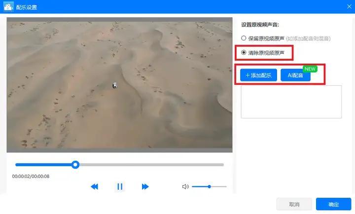 選中【清理原視頻原聲】,這樣導入新的音頻後就會顯得重複和嘈雜。