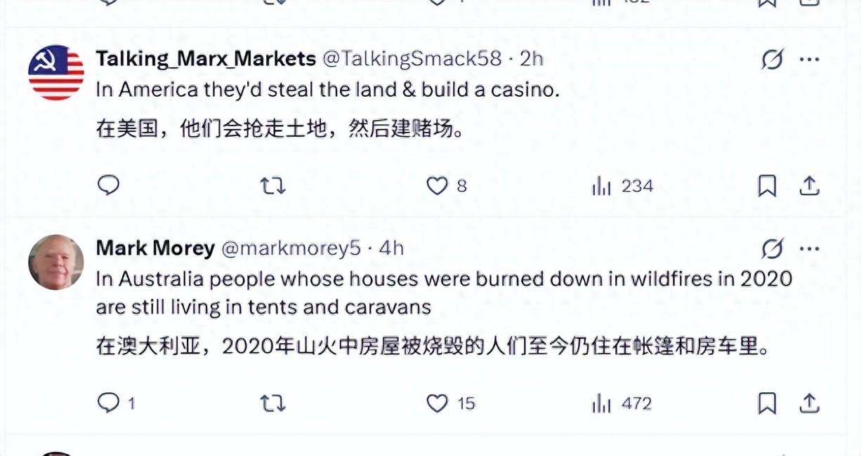 澳大利亞的網友也表示,2020年澳大利亞山火被燒燬的房屋的人們,至今仍然住在帳篷和房車裏。