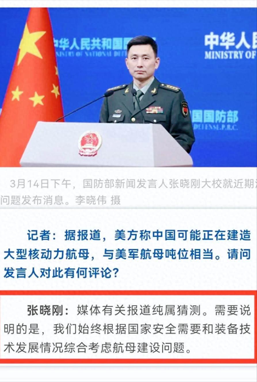 國防部回應中國核動力航母傳聞,兩句話彰顯戰略定力!