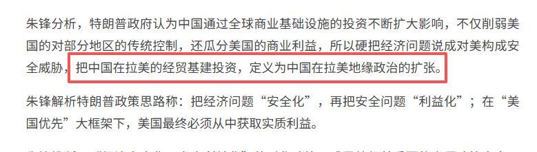 對美國來說,打擊委內瑞拉是其戰略收縮的重要表現,美國確實是戰略收縮了,但是越是收縮,越是不容他國進入“美洲地盤”,美國早已經把拉丁美洲視爲自己的後花園,不允許任何外部勢力染指,儘管中國只是想去拉丁美洲搞建設,搞投資,做生意,但依然被美國視爲“威脅”。