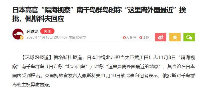 俄羅斯外交部發言人扎哈羅娃還表示,80年前這些島嶼上發生的激烈衝突,正是因爲當時日本統治者的錯誤,而現在的日本政府,再次選擇了侵略性的軍國主義道路。
