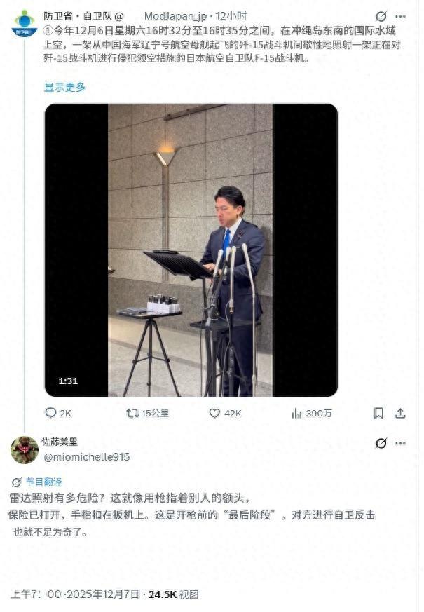 咱們的遼寧艦航母編隊在宮古海峽自由航行,結果日本應激了,竟然妄稱我國殲15用雷達照射日本戰機,卻絲毫不談日本戰機當時的所作所爲。