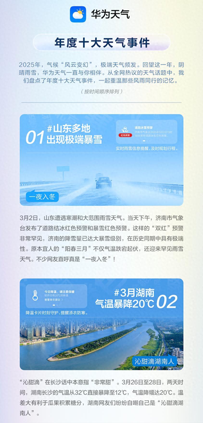 救命!今年大出圈的天氣刺客,華爲天氣2025年度先鋒榜一圖看懂