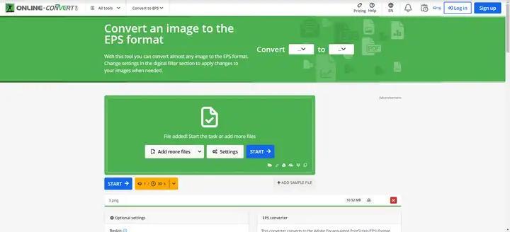 一個不錯的在線文件轉換工具,支持轉換圖片、視頻、音頻和文檔,可以快速的將png轉換成需要的eps格式。只需要進入網站,選擇需要的功能,導入png圖片,設置一下轉換參數,最後點擊轉換按鈕即可。