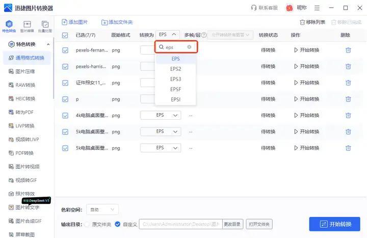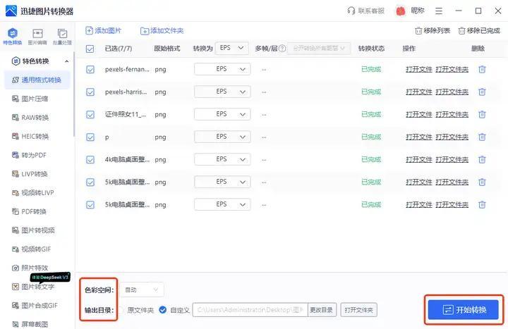 還能調整一下色彩空間和輸出目錄等參數,最後點擊【開始轉換】即可得到轉換成功的eps了。