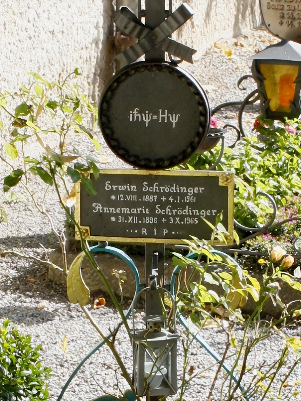 1961年1月,充滿傳奇色彩的薛定諤走完了他的一生,安葬在奧地利阿爾卑巴因小鎮的墓地。他的墓碑極其簡樸,卻刻着那條改變物理學的公式——薛定諤方程。這不僅是他一生的寫照,更像是他留給後世的宣言:用方程去探索微觀的真理,用思想去追問現實與生命的奧祕。