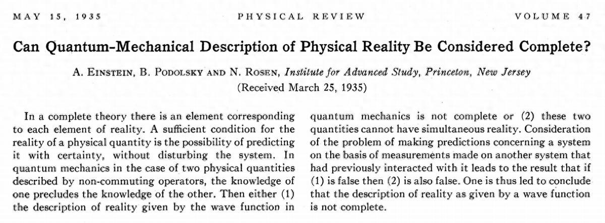 [1]Einstein A, Podolsky B, Rosen N. Can quantum-mechanical description of physical reality be considered complete?[J]. Physical review, 1935, 47(10): 777.