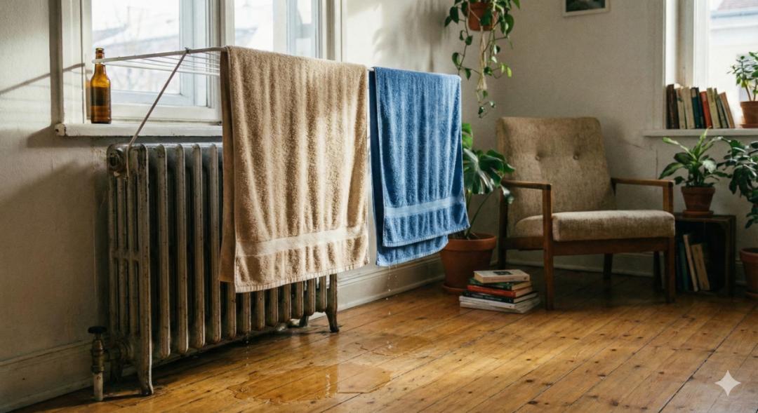 第一種方案是“手動版”加溼。既然蒸發式加溼器的原理就是增加水的表面積,那你完全可以在暖氣片或空調附近(注意保持安全距離)晾兩件剛洗好的溼衣服,或者掛幾條溼毛巾。這在物理本質上,就是一臺巨大的、一次性的、不需要購買濾網的蒸發式加溼器。最關鍵的是,毛巾你肯定會每天洗,這就完美解決了機器濾網容易滋生細菌的難題。