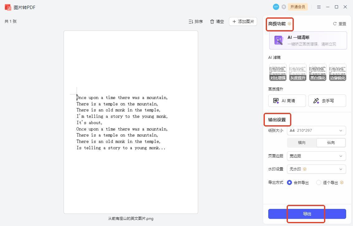 一個常見的辦公軟件,不僅可以用來編輯PDF文件,還能將圖片轉爲PDF格式,操作也不難,只需要選中圖片,點擊【圖片轉換】中的【轉爲PDF】,接着設置一下輸出的PDF紙張大小、頁面邊距、水印等參數即可導出。