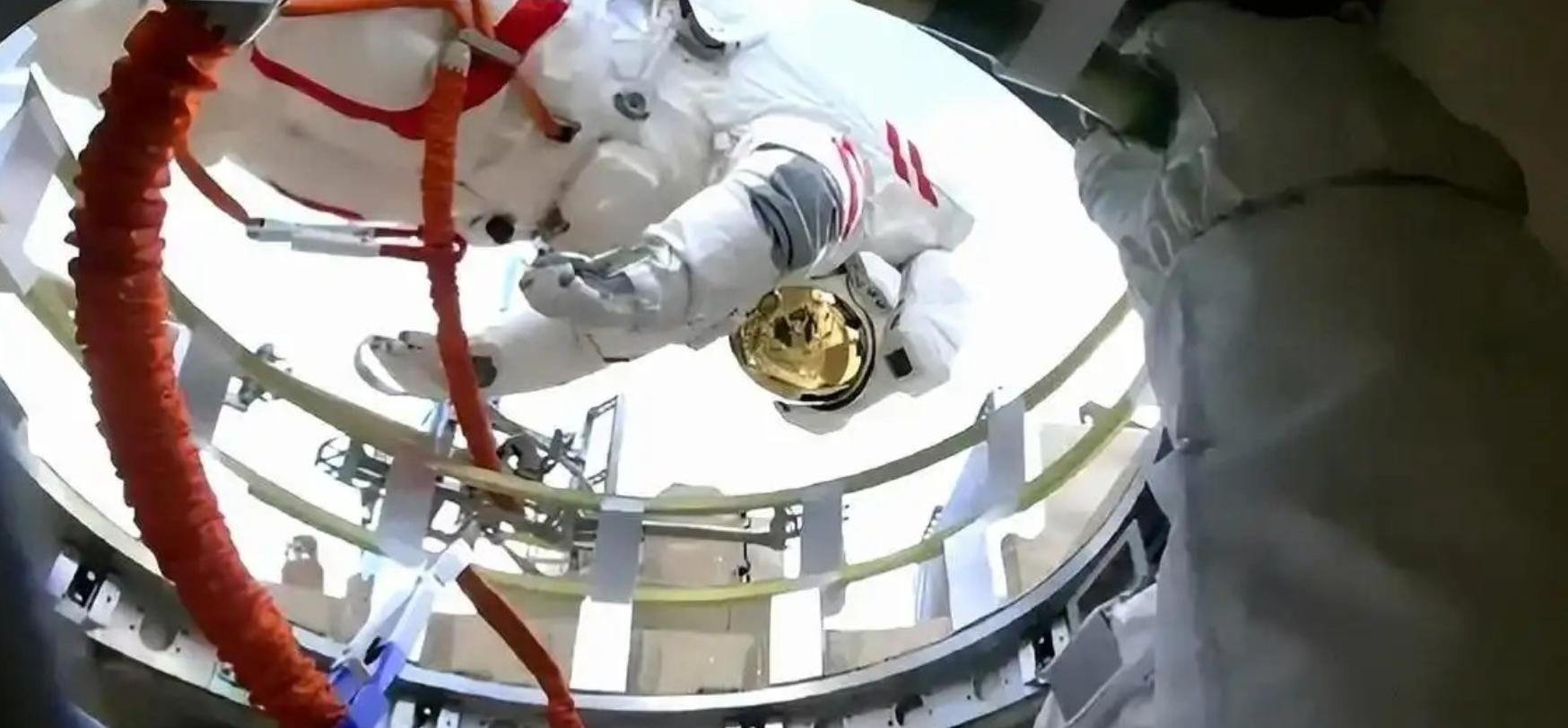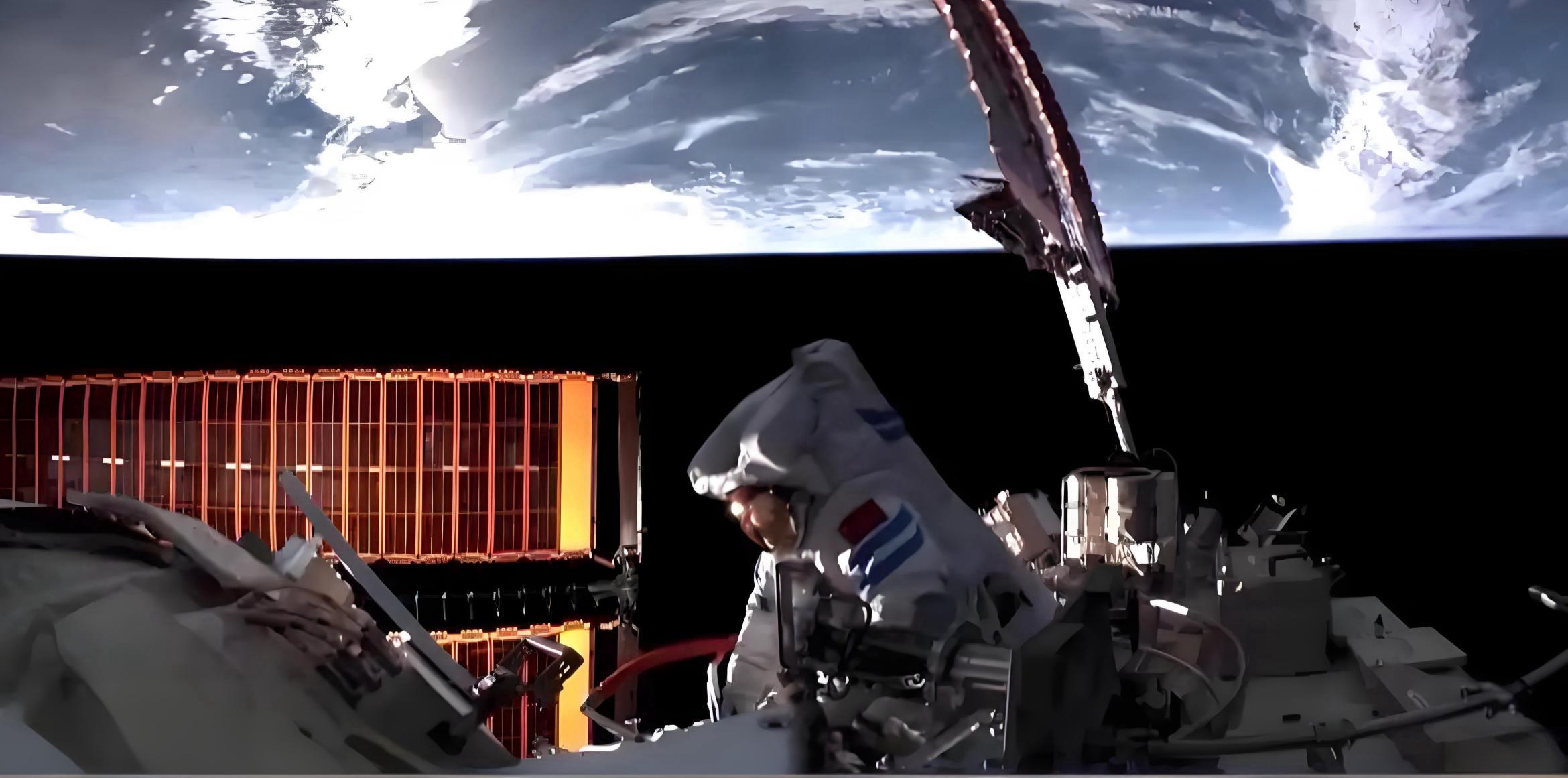 歷經8小時緊張刺激的太空作業,當天18時45分,出艙航天員張陸和武飛圓滿完成所有既定任務,安全返回問天實驗艙氣閘艙。