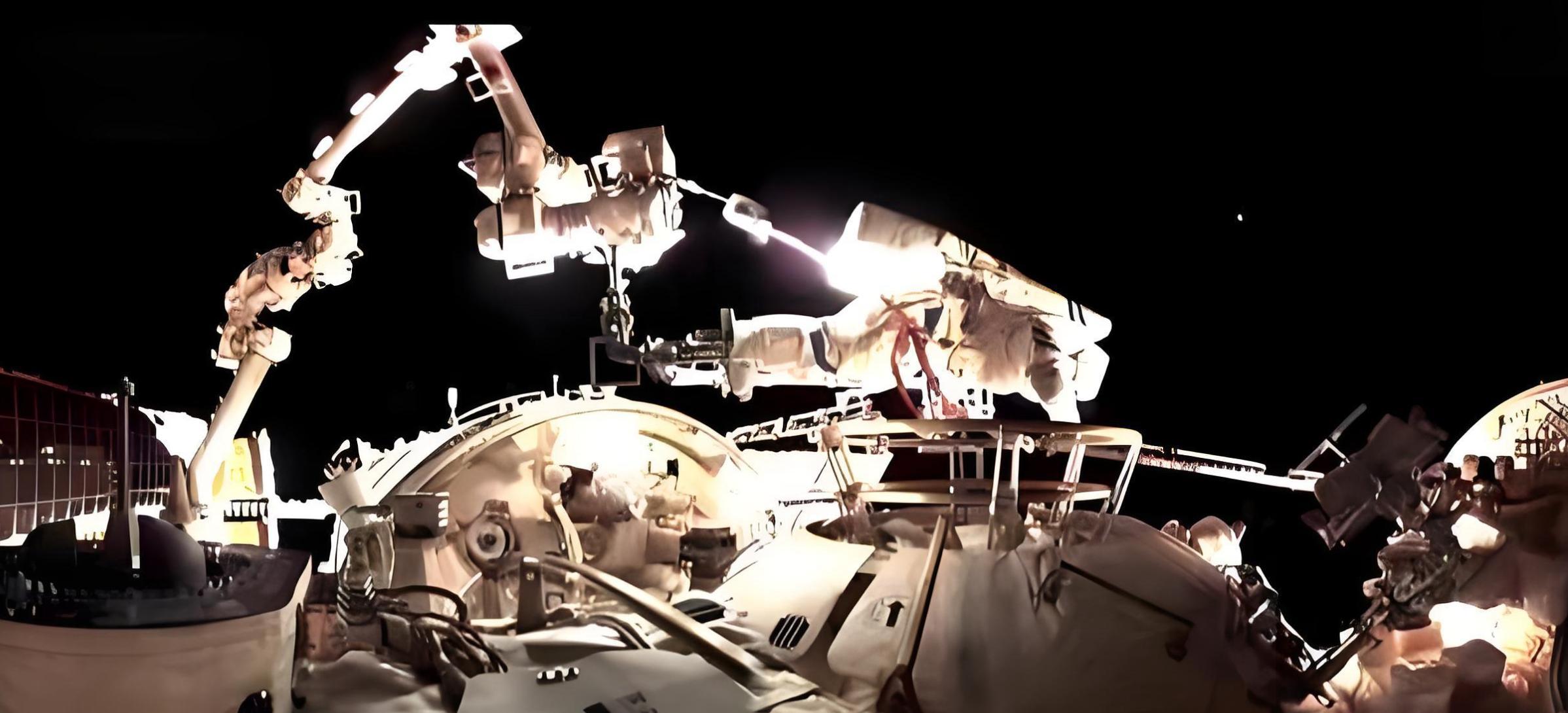 同時需要兩個人配合默契,一人搬運裝置,另一人操控機械臂輔助定位,兩人在失重環境下協同配合,既要克服裝置的慣性阻力,又要避免碰撞到周邊的相關設施,難度可想而知。