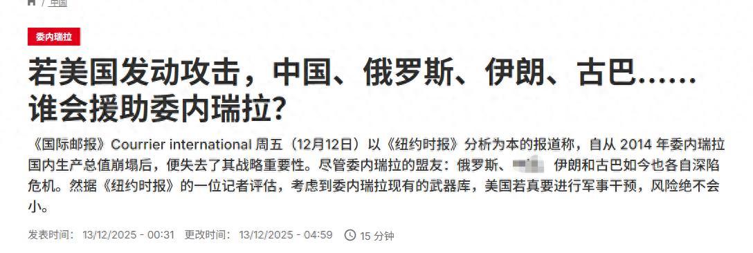如果美國對委內瑞拉發動攻擊,中國、俄羅斯、伊朗、古巴…… 誰會援助委內瑞拉?這是外媒的標題。